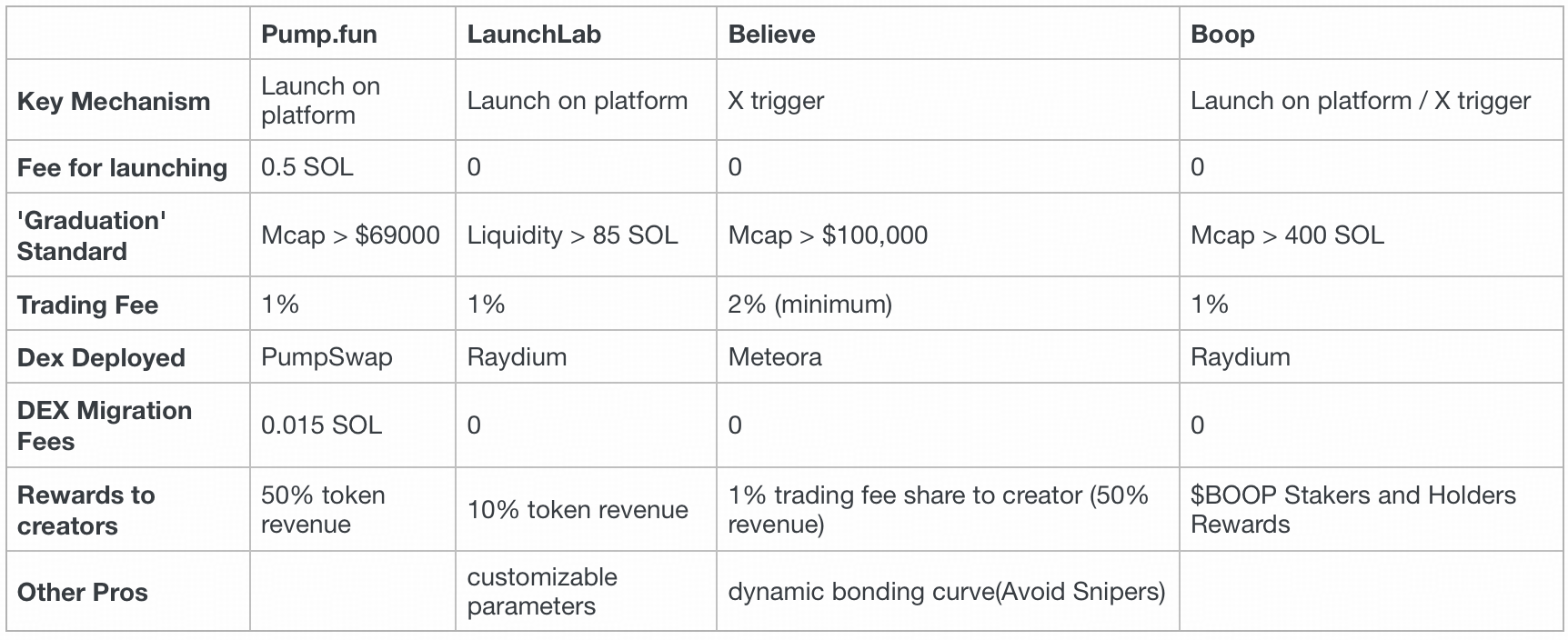 LaunchLab: While low launch fees, low graduation standards and zero-migration fees may appear attractive to creators, they also lower the entry barrier to a point where "scam" or "pump-and-dump" projects can proliferate. This undermines overall project quality. In the absence of core innovation or differentiation, the platform may face challenges in sustaining long-term growth and competitiveness.